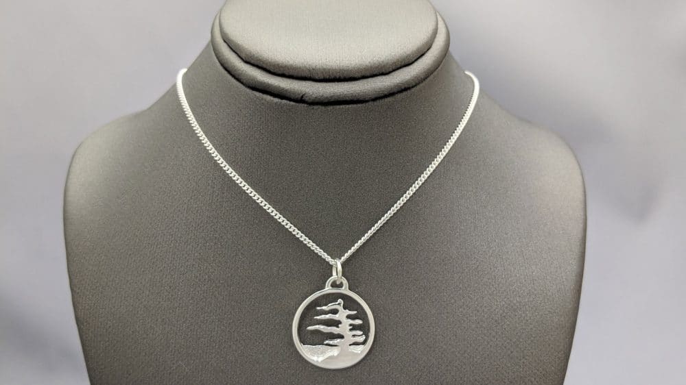 The Muskoka Collection of jewellery was designed by John McConnell, the cabin’s original owner. The necklaces and rings were designed with the Muskoka scenery in mind and feature a single windswept pine beside a serene lake and rolling hills. The collection comes in sterling, sterling with a gold tree, or solid gold designs. It is both an elegant and iconic collection.
