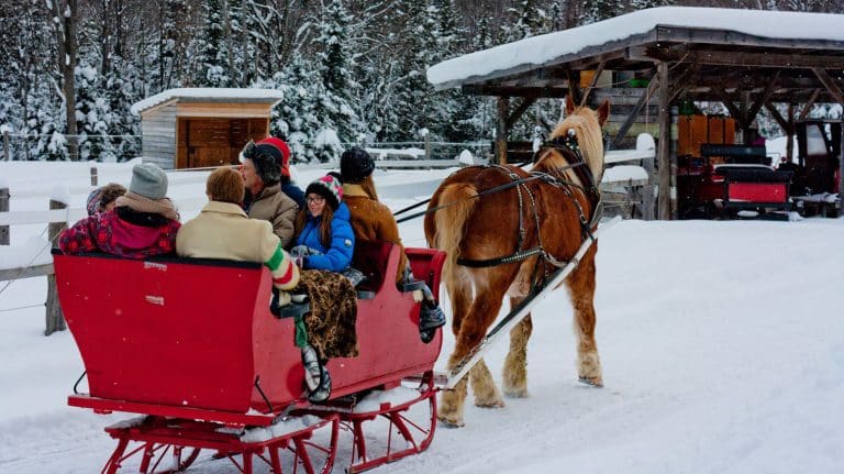 Dash Through Muskoka’s Snowy Woodland Forest in a One-Horse Open Sleigh