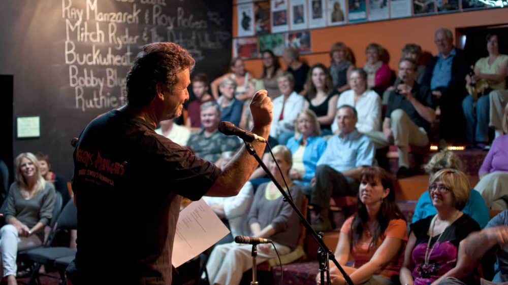 You don’t get this kind of up close and personal treatment when you catch a band at the Air Canada Centre. But it’s the way things work at Peters’ Players. Mind you, the entire venue seats less than 100 people, all of them gathered on five rows of seating in a small building that looks and feels like the basement of the coolest kid in high school. Peter’s motto for the venue is “A Place Like No Other,” and he’s bang on.