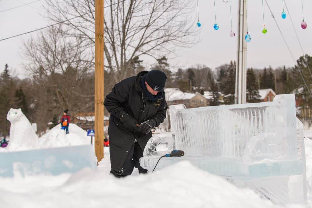 The “FIRE” features include  performances by talented fire artists and a spectacular fireworks display. Warm up around the many fire pits throughout the festival and enjoy a classic Muskoka treat,  on a open fire.  The “ICE” features include our , interactive ice displays, ice sculpture carvings, ice skating (BYOS) .